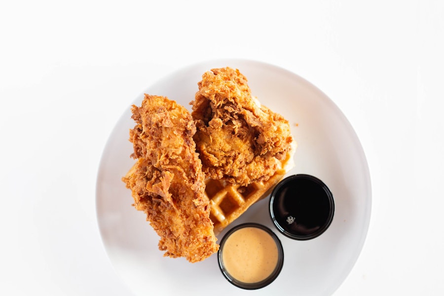 Liege waffle & nashville style buttermilk fried chicken, with a side of special sauce & maple syrup