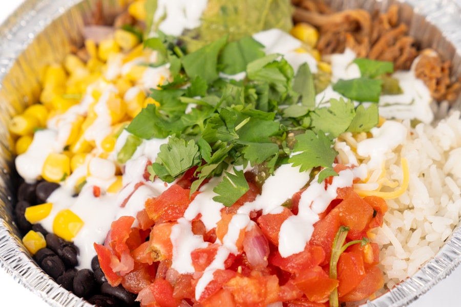 Each lunch bag includes your choice of bowl or burrito with rice, beans, sour cream, shredded cheese, pico de gallo and shredded lettuce. Served with chips, and mild green salsa on the side