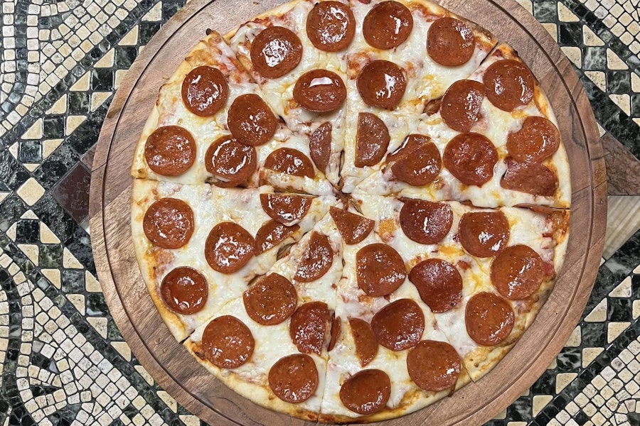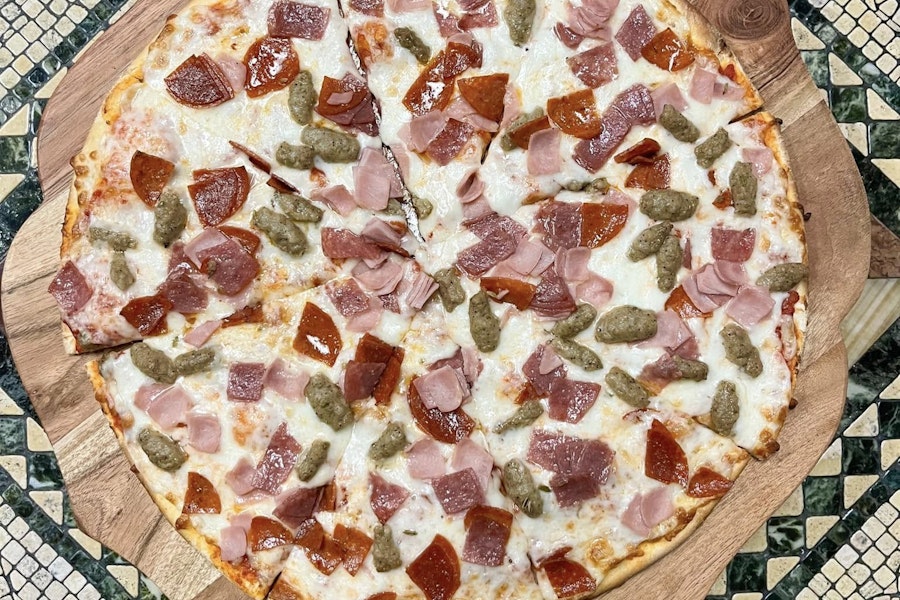 Pepperoni, italian sausage, black olives, mushrooms, red and green peppers, onions, artichokes, parsley