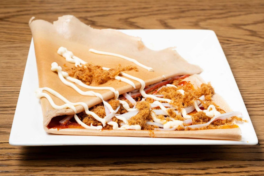 Sweet chili paste, shredded dried pork, crab stick and mayonnaise