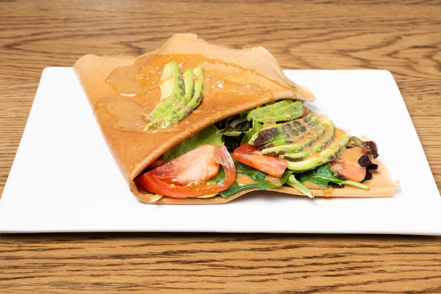 Spinach & artichoke spread, avocado, tomato, mixed greens and sesame sauce