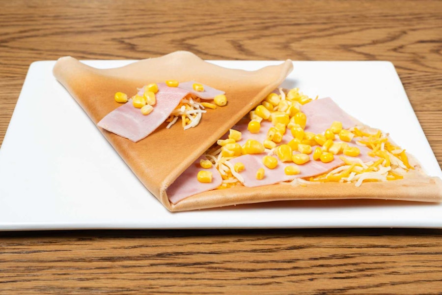 Ham, corn, cheddar cheese, mozzarella cheese & parmesan cheese