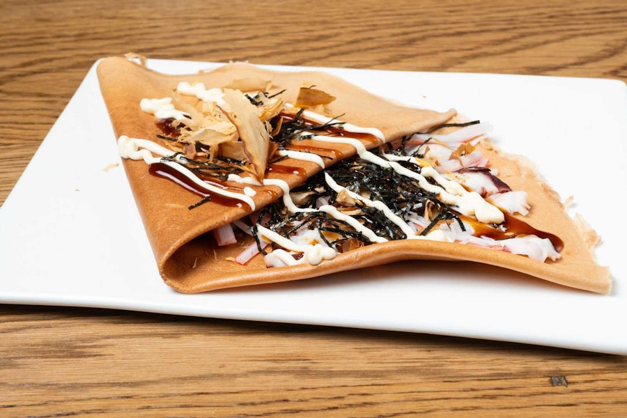 Octopus, crabstick, shredded nori, bonito and mayonnaise