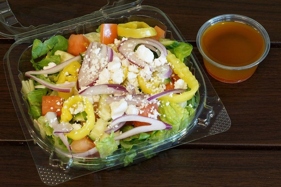 Romaine with kalamata olives, tomatoes, banana peppers, red onions, feta cheese, and italian vinaigrette