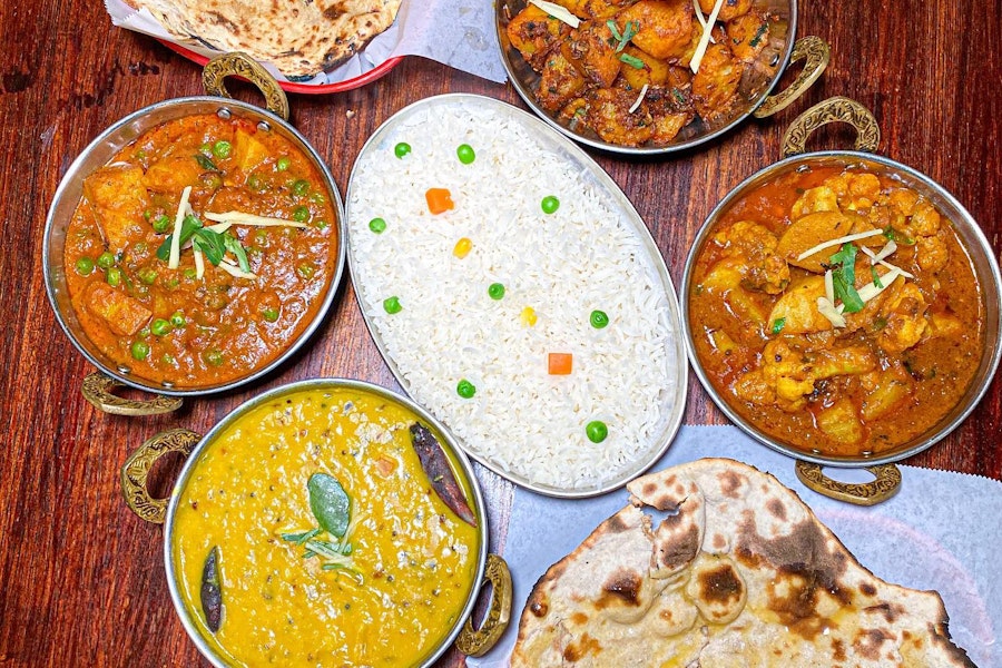 A vegetarian dish from the indian subcontinent made with potatoes (aloo), cauliflower (gobi), and indian spices