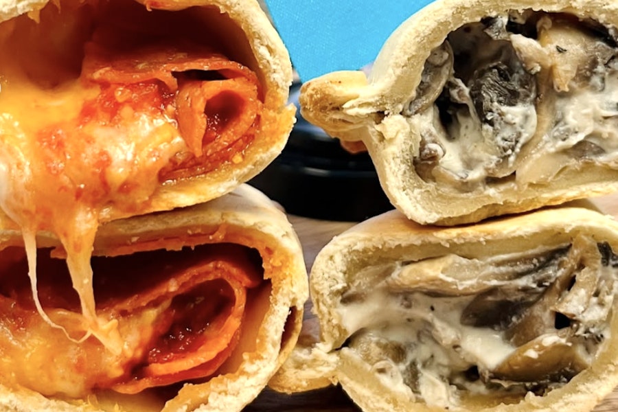 Pepperoni, tomato sauce, cheddar, and mozzarella