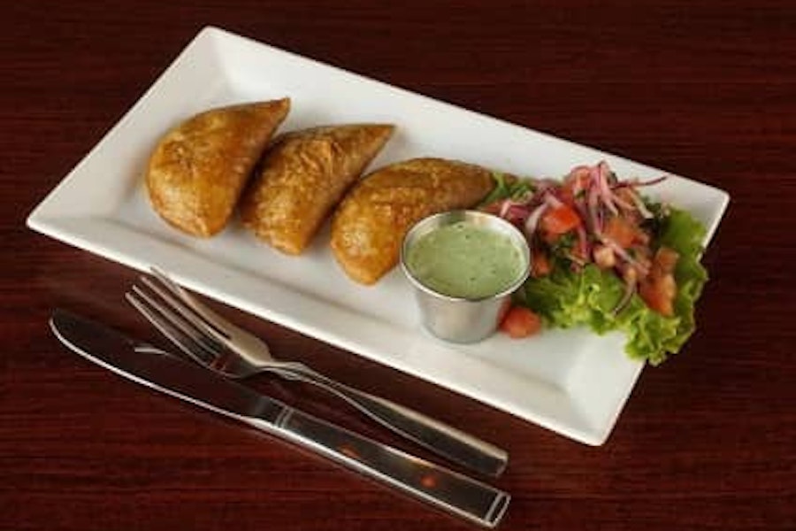 Beef turnovers with garlic sauce on the side