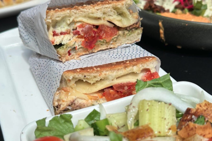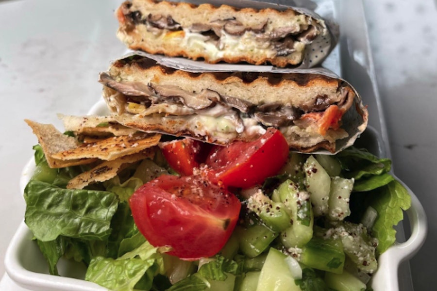 Chicken, grilled veggies, sumac, lemon-pepper aioli, signature hummus