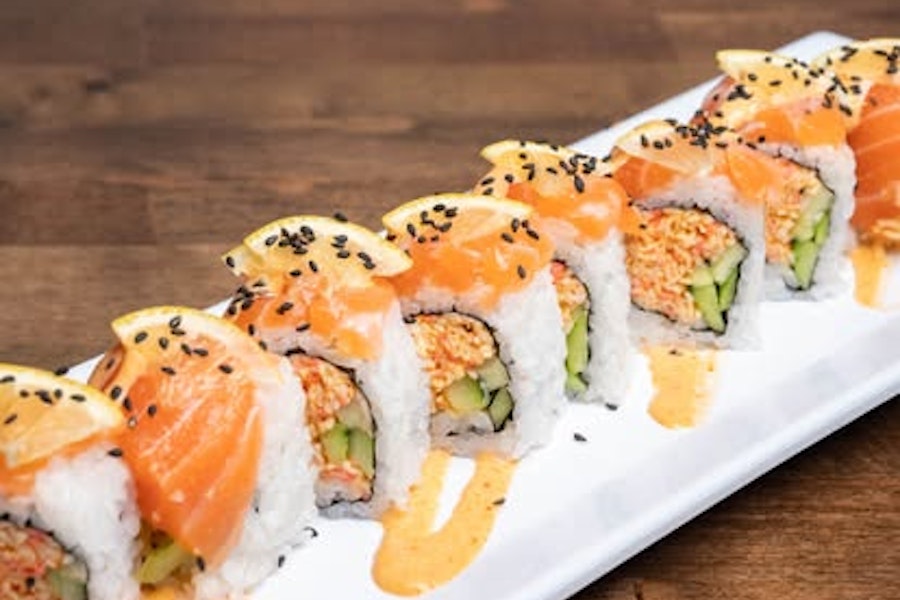 Smoked salmon, cream cheese, avocado, topped with sweet honey garlic sauce and tobiko