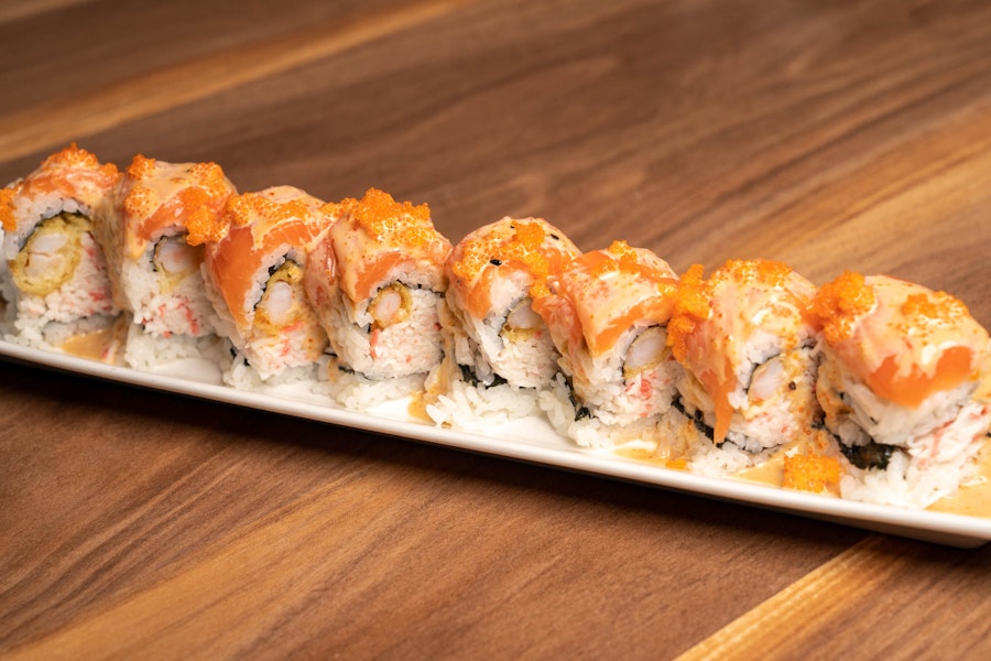 Spicy tuna, cucumber, salmon, tobiko, eel sauce and spicy mayo