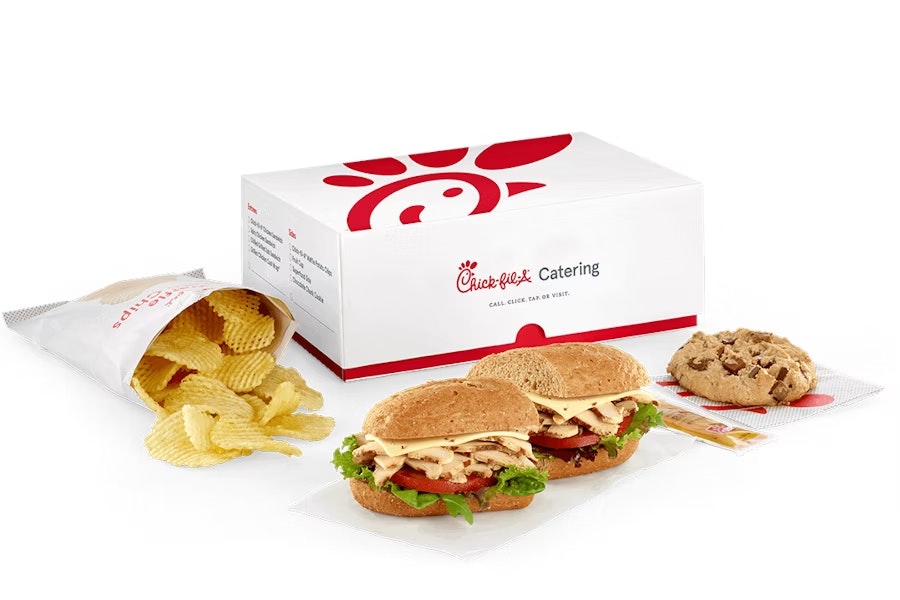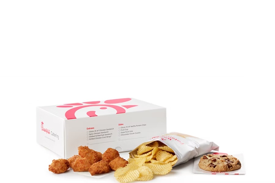 All meals include a bag of waffle potato chips and a chocolate chunk cookie