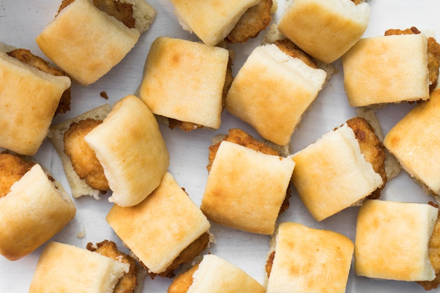 Delight in the perfect blend of savory and sweet with warm, bite-sized nuggets tucked in fluffy mini rolls!