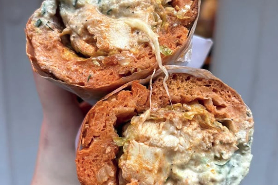 Spicy buffalo chicken, melted swiss, house avocado & celery ranch slaw, bibb lettuce, dill, sesame hero