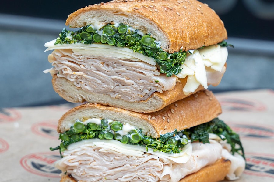 Roasted turkey breast, provolone, broccoli rabe, mayo, hot honey sauce