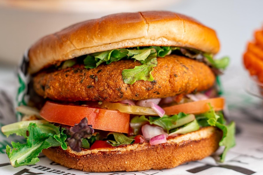 Crispy chicken patty, sliced tomatoes, white cabbage, onions, jalapeños, and moroccan hot sauce