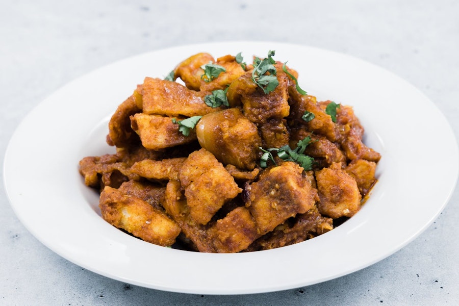 Boneless marinated chicken cubes sautéed with onions, jalapeño, fresh garlic, tomato, and flavored with our herb and spice blend