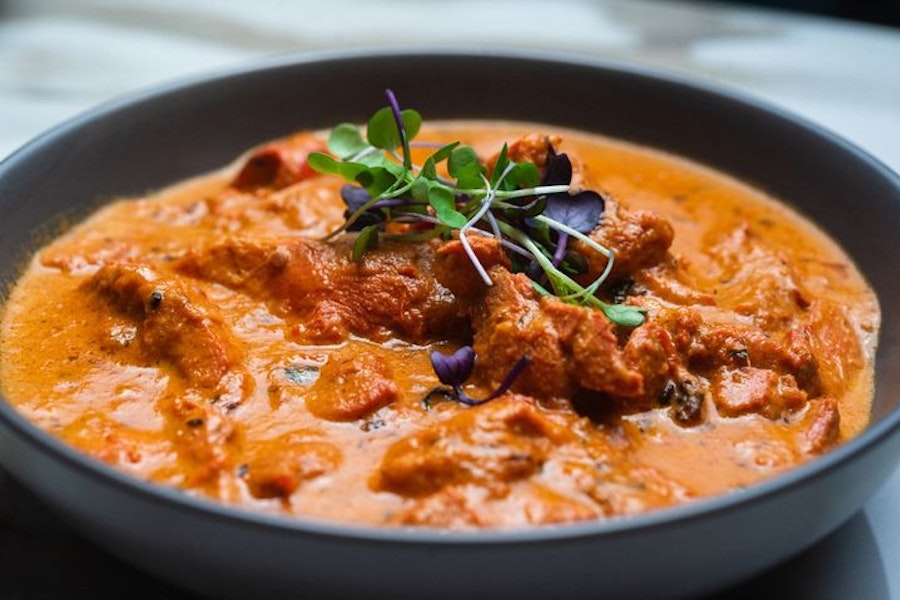 Chicken in a 48-hour marinade of yogurt & spices, charred in the tandoor then finished in a creamy tomato curry flavored with fenugreek