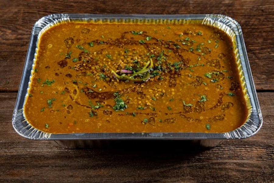 Mixture of lentils (black eyed peas, kidney beans, moong beans, red lentils) cooked with onion, garlic, ginger, tomato, cumin, coriander, jalapeno, cilantro, dry mango powder, pomegranate powder, cardamom, clove, cinnamon, bay leaf, tomato