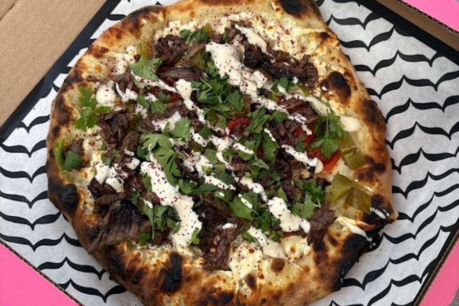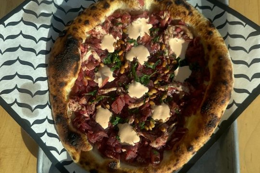 Harissa san marzano red sauce, arabi cheese, beef pepperoni