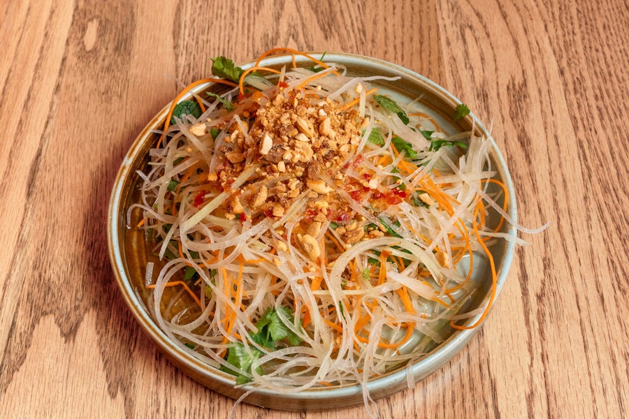 Papaya salad with peanut, mint, cilantro. Contains fish sauce