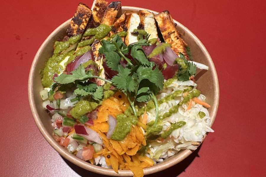 Tandoori roasted malai paneer with mustard oil, lemon, coriander, kashmiri chili pepper, paprika, kasoori methi
