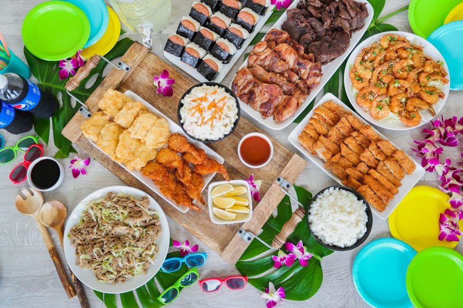 Indulge in a tropical feast with our succulent BBQ chicken, slow-cooked Kalua pork, crispy chicken katsu, creamy mac salad and more! These flavors will transport your taste buds straight to Hawaii!