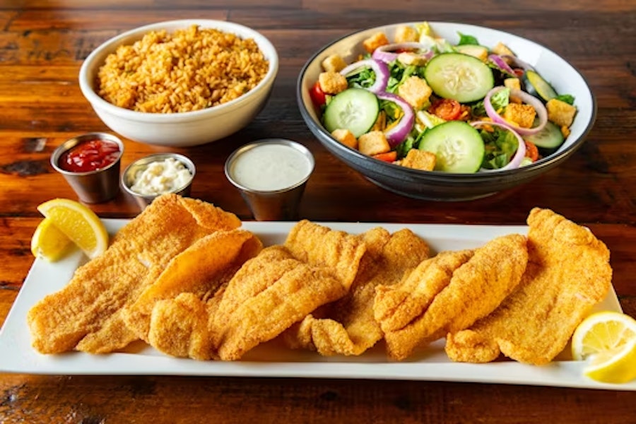 Hand-breaded catfish pieces and fried shrimp. Served with cocktail & tartar sauces
