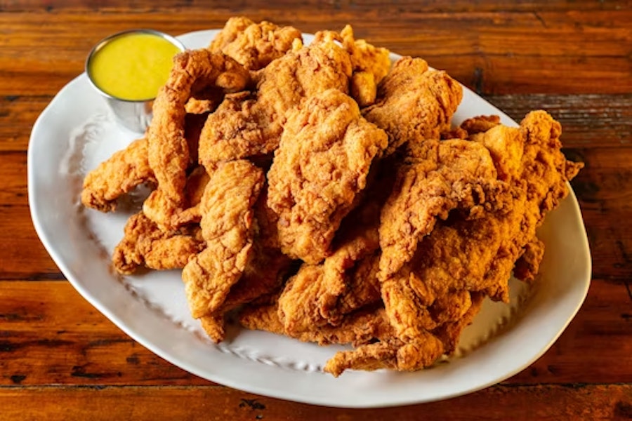 Hand-breaded chicken tenders served with honey mustard and ranch dipping sauce