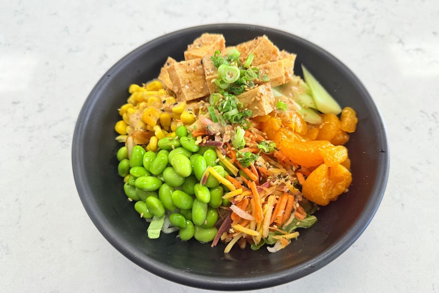 Fried lightly breaded tofu, french bread, pickled radish & carrot, cucumber, jalapeno, cilantro, vegan mayonnaise & vegan hoisin