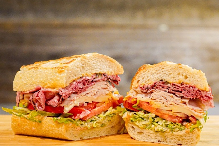 Genoa salami, turkey breast, house spread, lettuce, and tomato