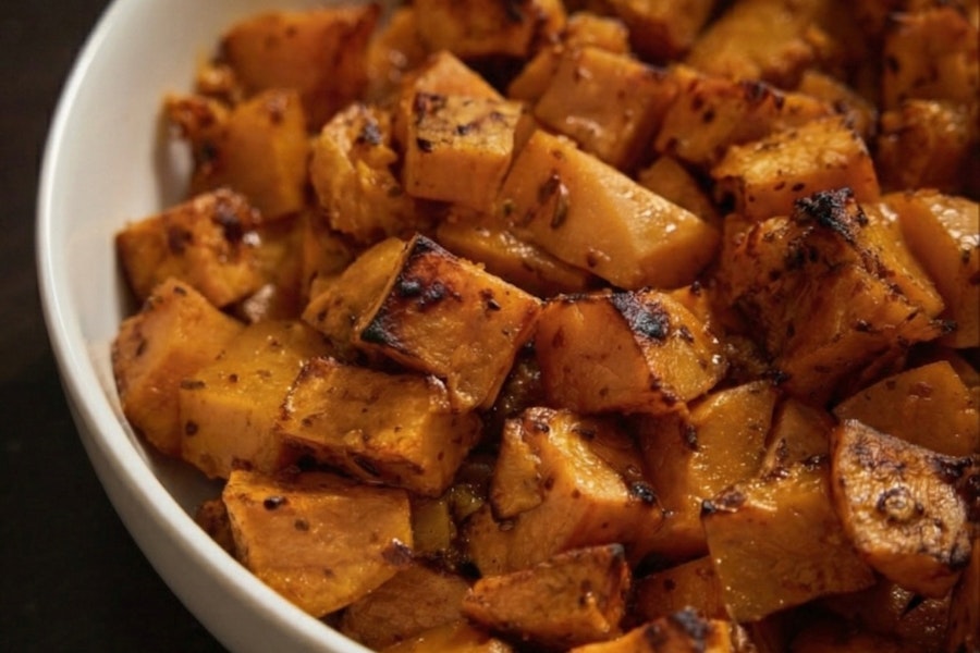 Roasted zucchini with garlic, mint, and olive oil