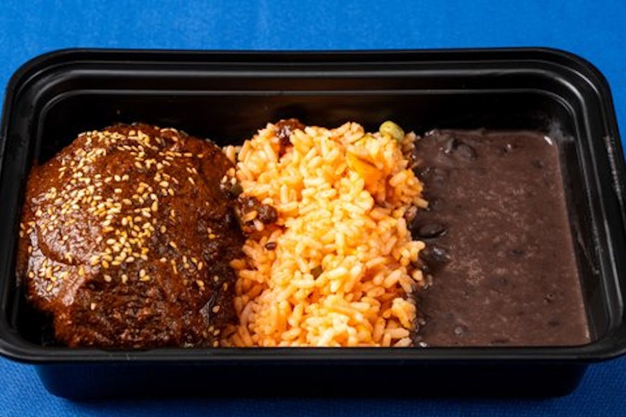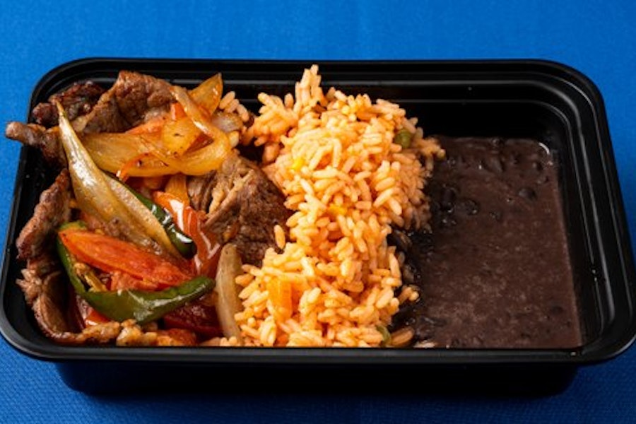 With mexican rice and beans. Flour tortilla served on the side (not gluten-free)