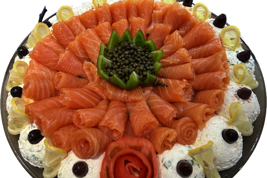 Hand-sliced norwegian smoked salmon with your choice of cream cheese and spread. Includes 1 bagel per person