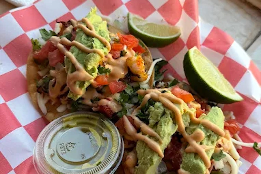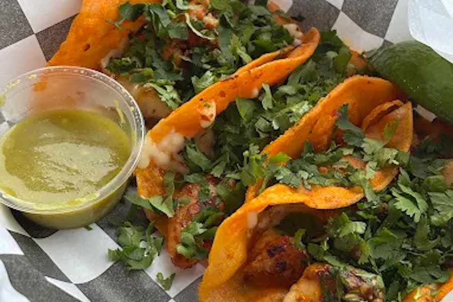 Three grilled tilapia tacos on corn tortillas, coleslaw, chipotle mayo, side of lime & salsa verde. Deep-fried