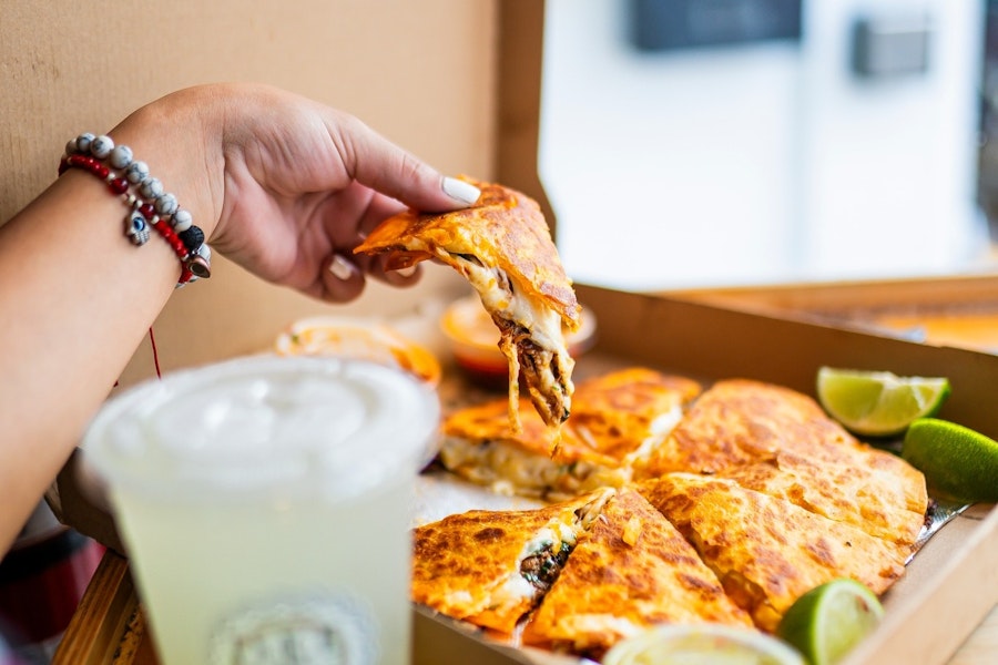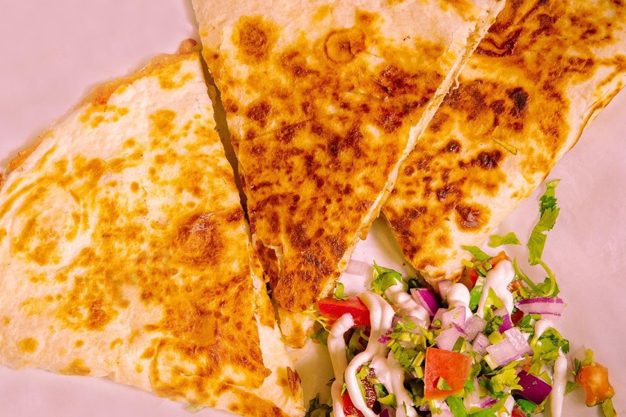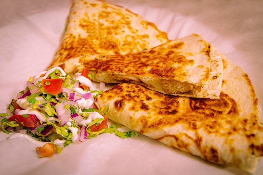 Flour tortilla, cheese with chicken, served with sour cream, pico de gallo, side of salsa verde & tortilla chips