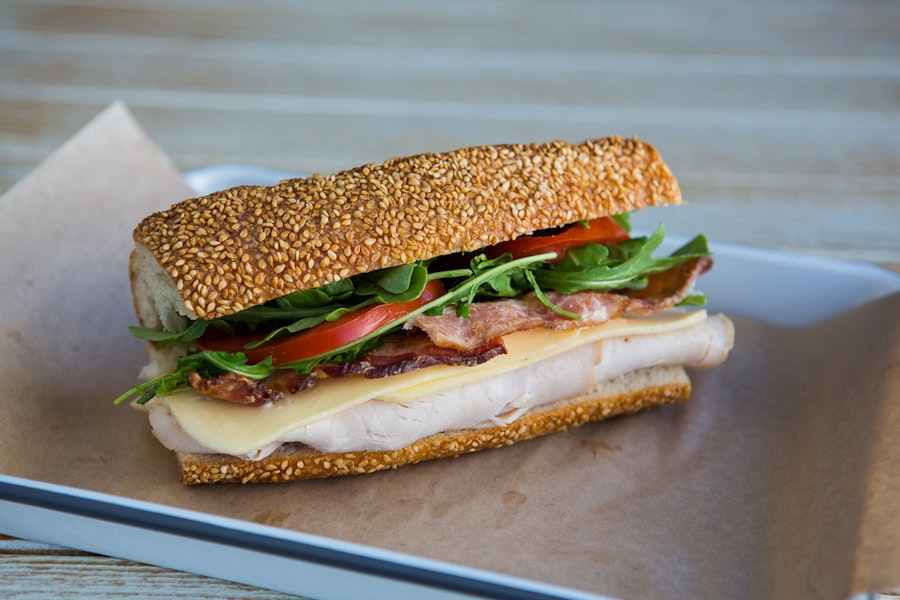 Mortadella, soppressata, finocchio, buffalo mozzarella, roasted peppers, giardiniera relish, red onion, lettuce, tomatoes, olive oil, and garlic aioli. Served on gluten-free bread