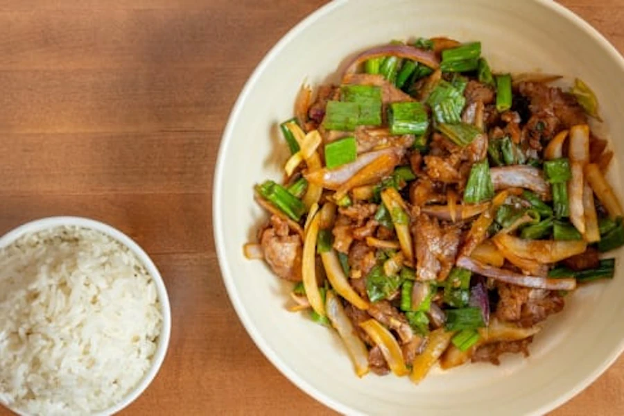Shredded beef with scallion and onions in light brown sauce