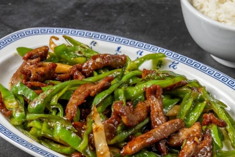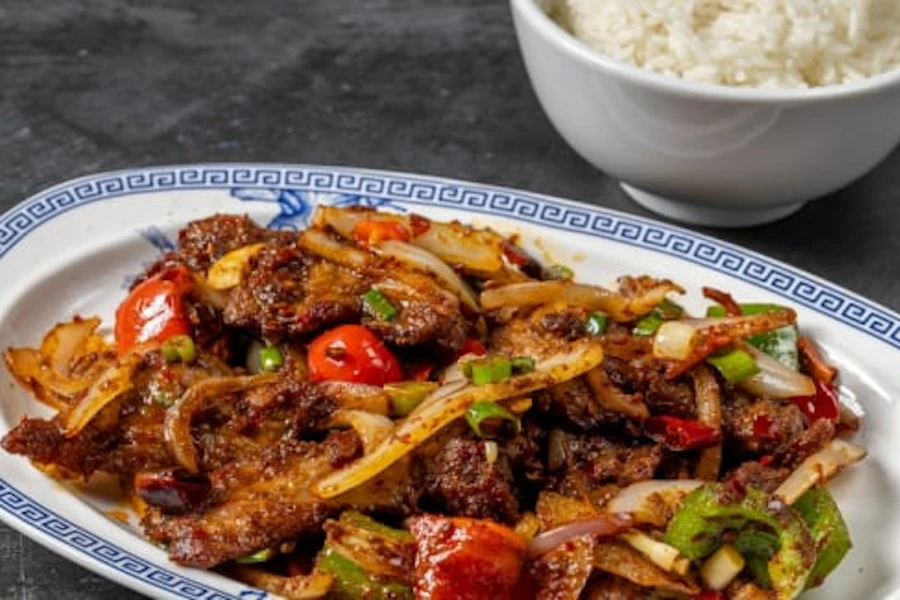 Hunan style, cumin & chiles stir-fried with onions and bell peppers