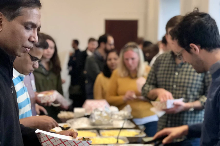 Order one for every full pan of food. Note: chafers will hold 1 full pan of food. Pictured above is 2 half pans on a chafer stand. 1/4 pans will not fit on chafer stands. Feel free to call the catering line for guidance on purchasing stands