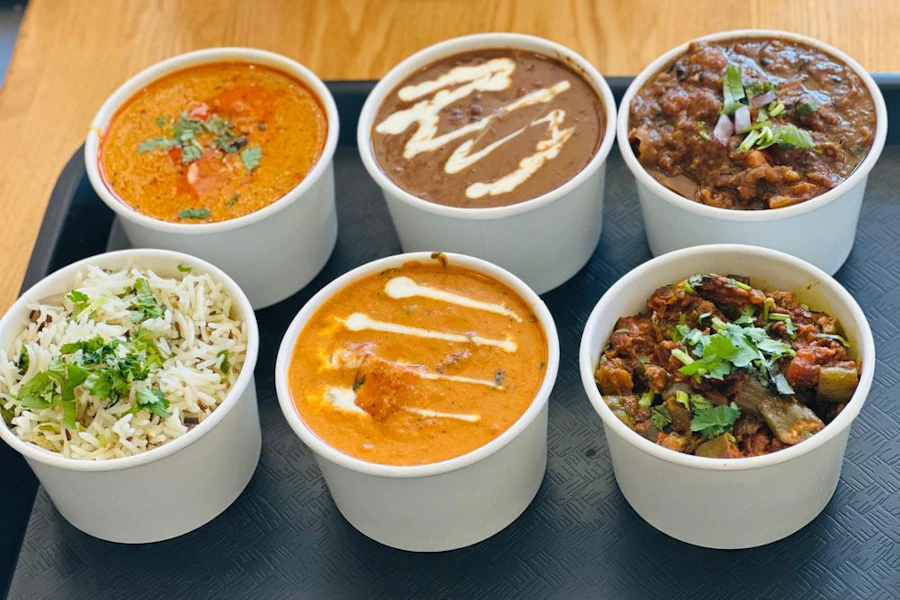 Each bowl Includes curry over rice, with butter naan bread, and gulab jamun dessert Curry meals are served with rice