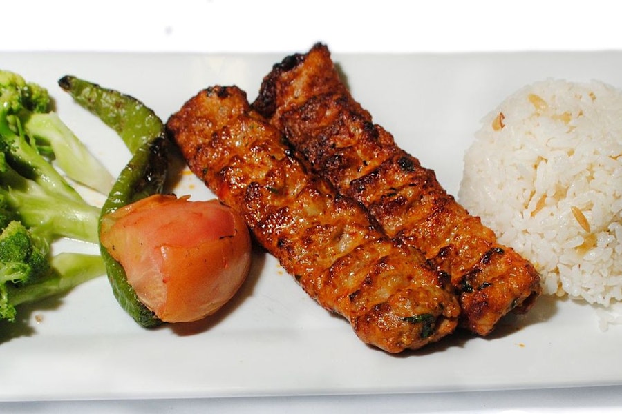 Turkish dish consisting of ground lamb, grilled on a skewer and served wrapped in lavash and topped with tomato sauce and yogurt