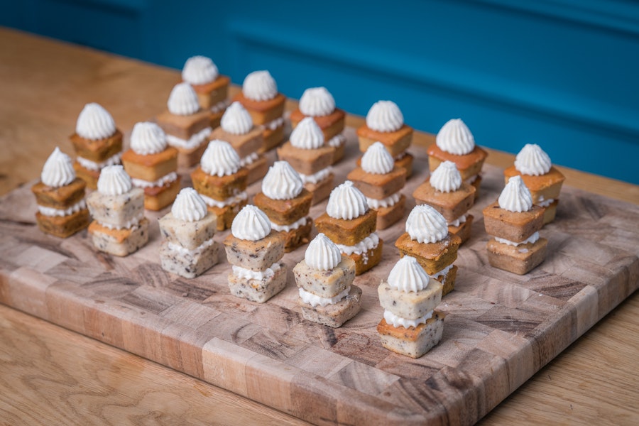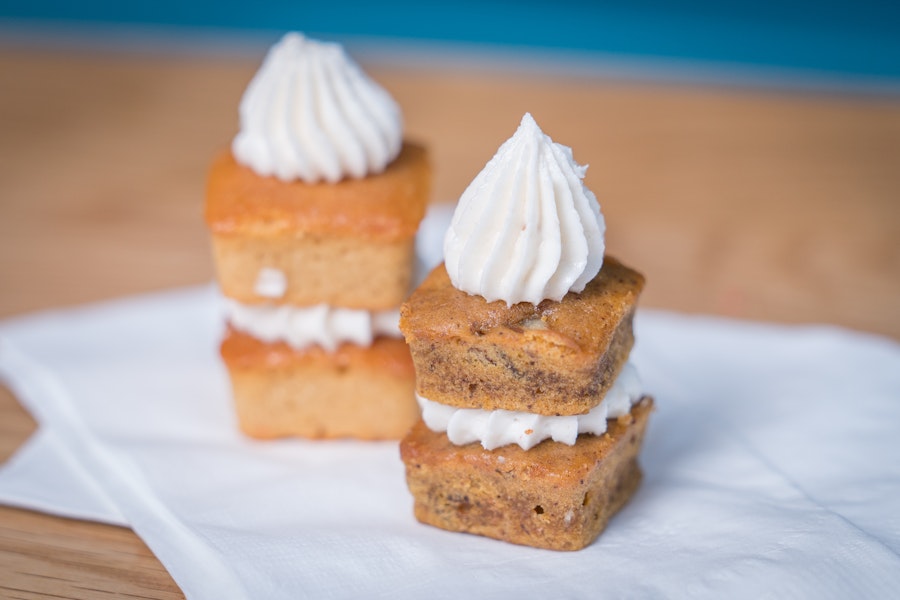 Our whoops are mouth-watering, bite-sized square treats packed with creamy icing swirls..they are perfect for any occasion, big and small, and great for family or client gifts. Celebrate fall and Thanksgiving with our special autumn flavors! All dairy is organic; other ingredients are all natural and organic and seasonal, whenever possible.