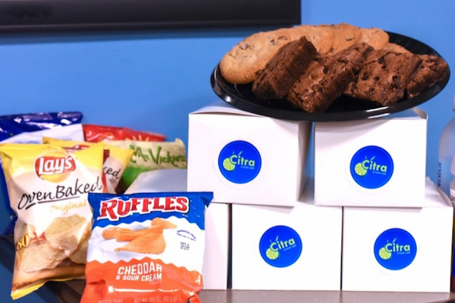 Includes three mini cookies (not vegan) & a bag of chips