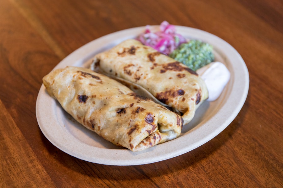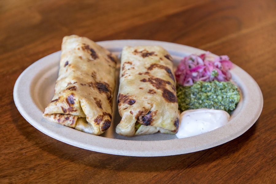 Ground spinach and cheese, pickled onions, coconut cilantro chutney