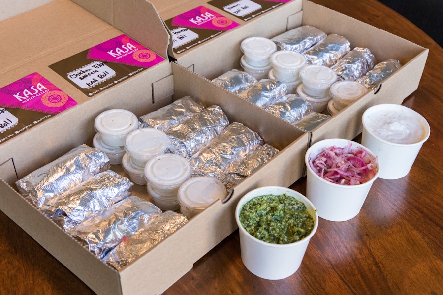 Tasty Kati Rolls! Enjoy roti flatbread (similar to a tortilla) wrapped up with your choice of filling. Makes for a deliciously satisfying lunch or dinner!