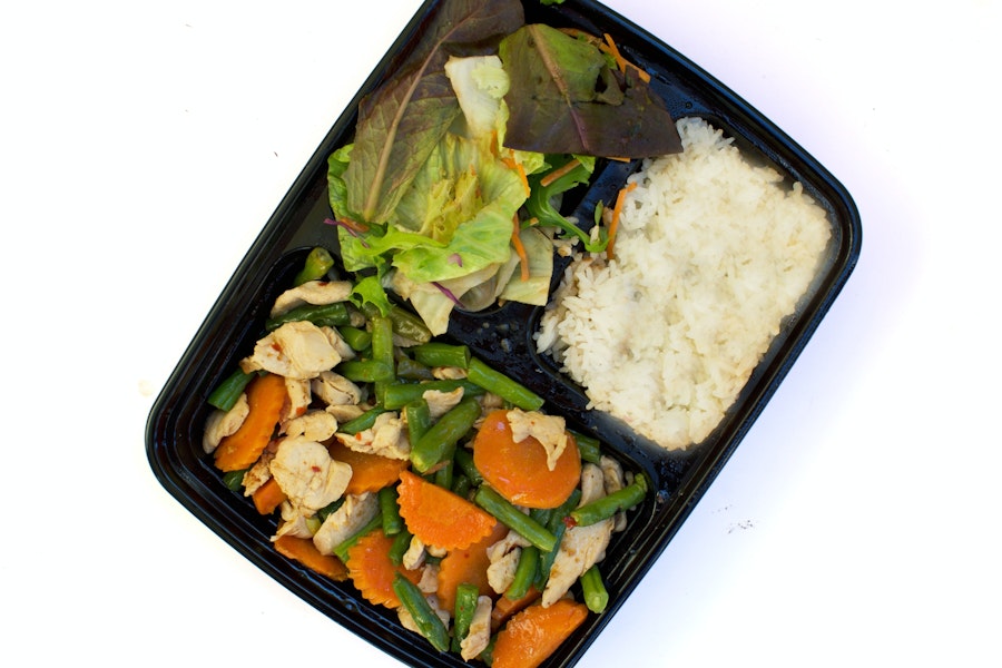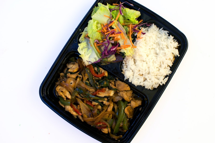Each box comes with your choice of protein, your choice of dish and spice level.