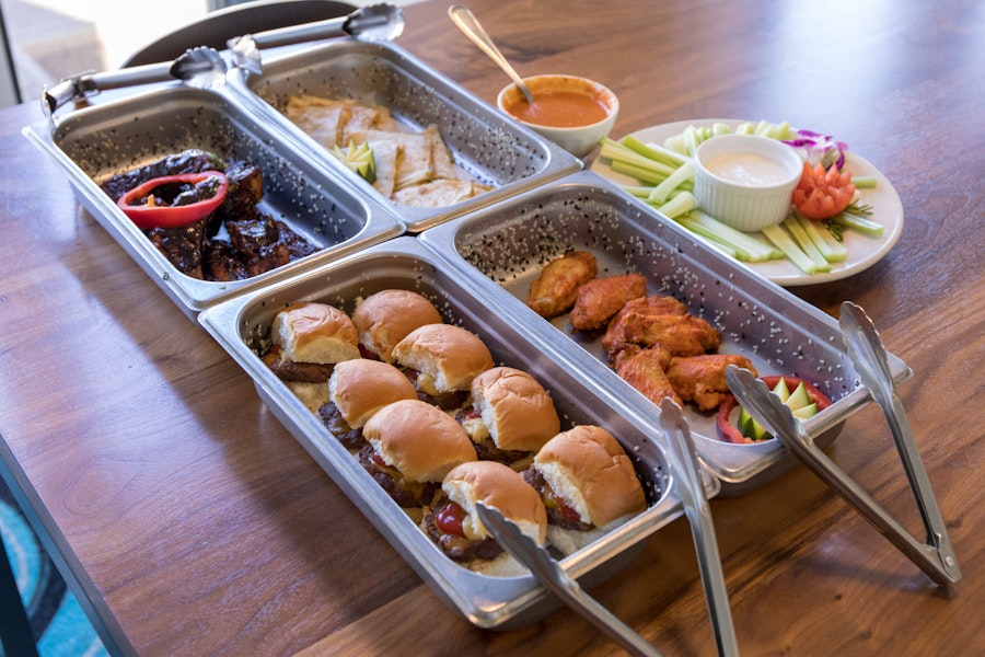 Sit back and relax, and we'll bring the sports bar to you! This package comes with everything you need for a crowd-pleasing happy hour, game day party or office event—wings, sliders, ribs, quesadillas, you name it!