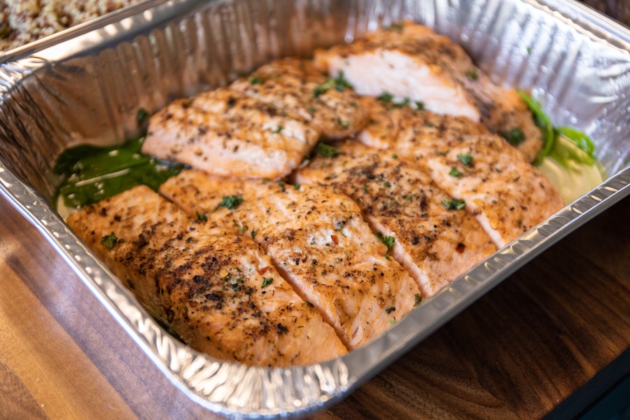 Let your guests create the grain bowl of their dreams, with fresh salmon, roasted veggies and homemade sauces. It's the perfect healthy, crowd-pleasing meal!