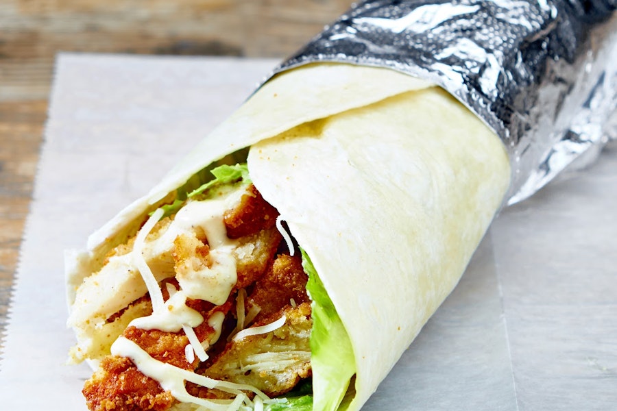 Grilled chicken breast wrapped with romaine lettuce, fresh shaved parmesan, Caesar dressing
