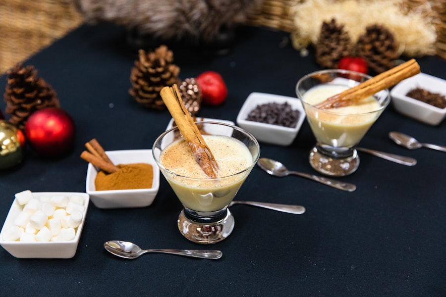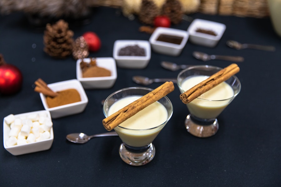 An assortment of holiday drinks! Served up with a tasty spread of toppings. Just add alcohol :)